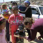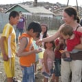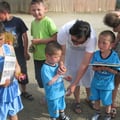 Die Kinder freuen sich und bedanken sich lieb bei uns. Fuer ein Foto stehen die Kinder gerne parat. Sabine, die auch schon letztes Jahr geholfen hat hilft bei der Aktion mit.