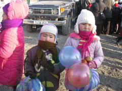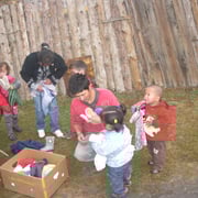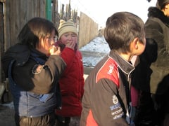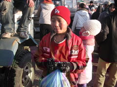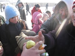 Mitte Dezember 2008 haben wir an 100 der ärmsten Familien des Stadtvierteles Charat in Ulanbaatar Kleidung und Obst verteilt.