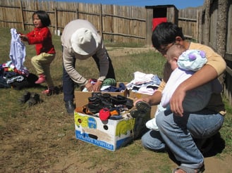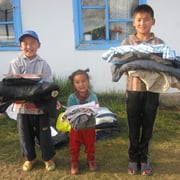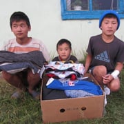 Von den fast monatlich eintreffenden Sachspendensammlungen, organisiert vom Deutsch-Mongolischen-Kulturverein, verteilen wir warme Winterkleidung.
