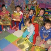 Verteilung von Kleidung, Spielsachen etc. an Waisenkinder der Beste Kinderhilfe Mongolei.